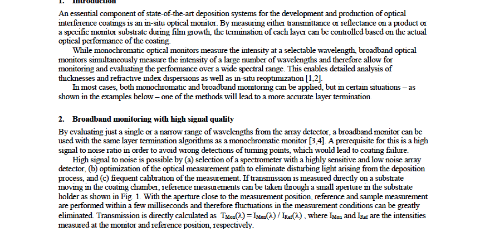 Broadband monitoring with high signal quality enables use of both broadband and monochromatic layer termination algorithms in the same process when depositing optical interference coatings. Case studies using a bandpass filter and an absorbing layer show how such a “hybrid” approach can lead to the most accurate layer termination.
